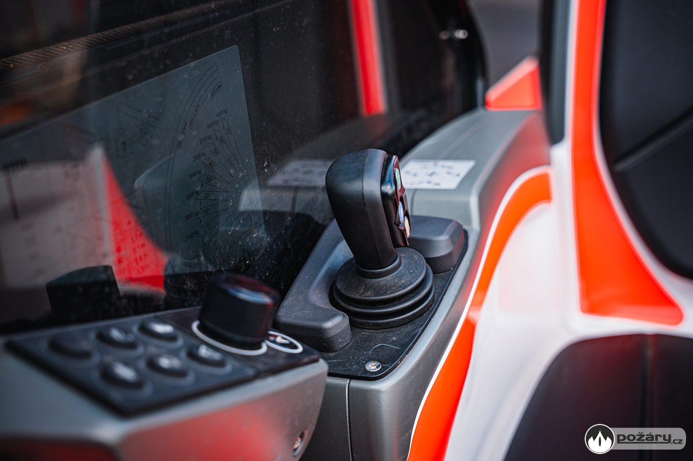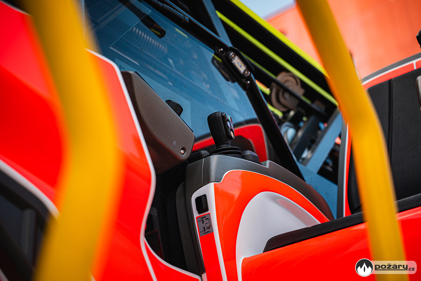 Hlavní pult strojníka se nachází klasicky na točnici. Jeho součástí je výklopný monitor a komfortní vyhřívaná sedačka doplněná o dva joysticky. Skvělou vychytávkou je automatické naklápění sedadla i pedálu „mrtvého muže“ přesně podle aktuálního elevačního úhlu žebříku.