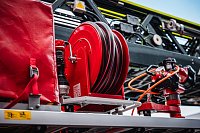Ochranu před sálavým žárem poskytuje systém vodních trysek na dně koše. Pro hasební zásah vodou či pěnou lze koš osadit lafetovou proudnicí Alco APF 2.5 IM-E s elektronickým ovládáním z obou pultů. Její průtok lze regulovat od 600 do 2 000 litrů za minutu.