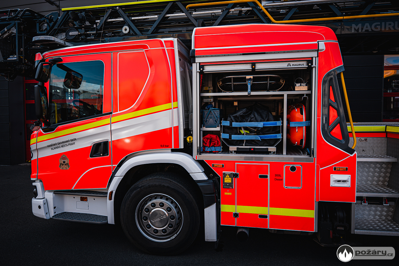 Hasičský záchranný sbor hlavního města Prahy převzal nový automobilový žebřík Scania – Magirus AZ 40-S1Z. Moderní technika, pořízená z účelové investiční dotace hlavního města Prahy za 26,9 milionu korun, posílí akceschopnost profesionálních hasičů při záchraně osob z výšek i při zdolávání požárů výškových budov.