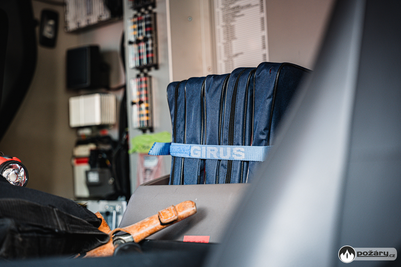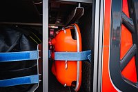 V opěradle sedadla velitele je integrován držák dýchacího přístroje, další přístroj je spolu s náhradní tlakovou láhví uchycen v kabině.