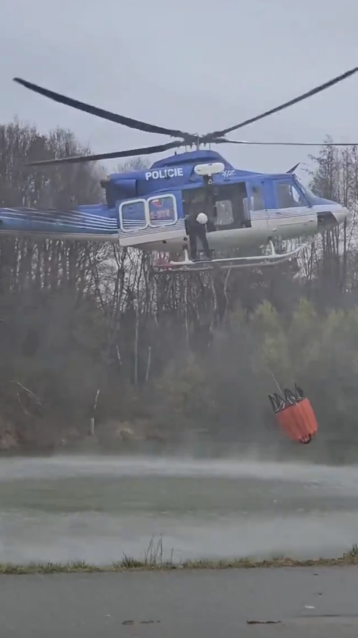 Zásadní roli při likvidaci takto rozsáhlých událostí hraje letecká podpora. Velitel zásahu proto rozhodl o nasazení vrtulníku Letecké služby Policie ČR, který je vybavený speciálním závěsným bambivakem. Ten umožňuje efektivní shazování vody přímo do nejhůře zasažených a pozemní technikou nedostupných ohnisek požáru.