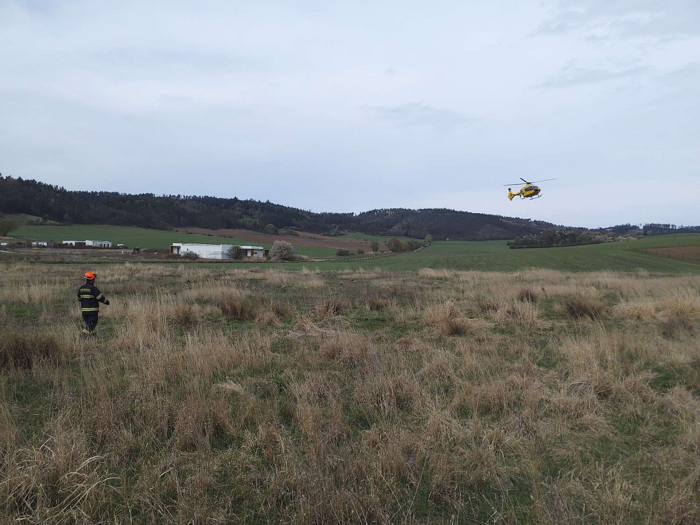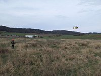 Hasiči zasahují u nehody osobního auta na silnici mezi obcemi Drásov a Všechovice na Brněnsku. Na místě je vrtulník LZS. Vozidlo je na střeše a uvnitř je jedna osoba, kterou hasiči vyprošťují.