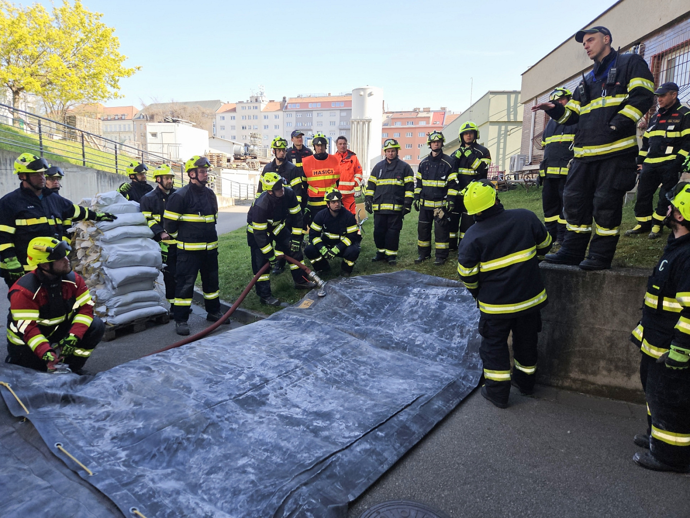 V sobotu ráno se hasiči přesunuli do Brna, kde na ulici Renčova vytvořili týlové zázemí pro jednotky. Následně se přesunuli do areálu Nemocnice Milosrdných Bratří. Tam si vyzkoušeli postavit protipovodňové vaky a stavěli hráze z dvoukomorových pytlů. Vyzkoušeli si rovněž čerpání vody ze Svratky přes náplavku a přes plot areálu nemocnice.