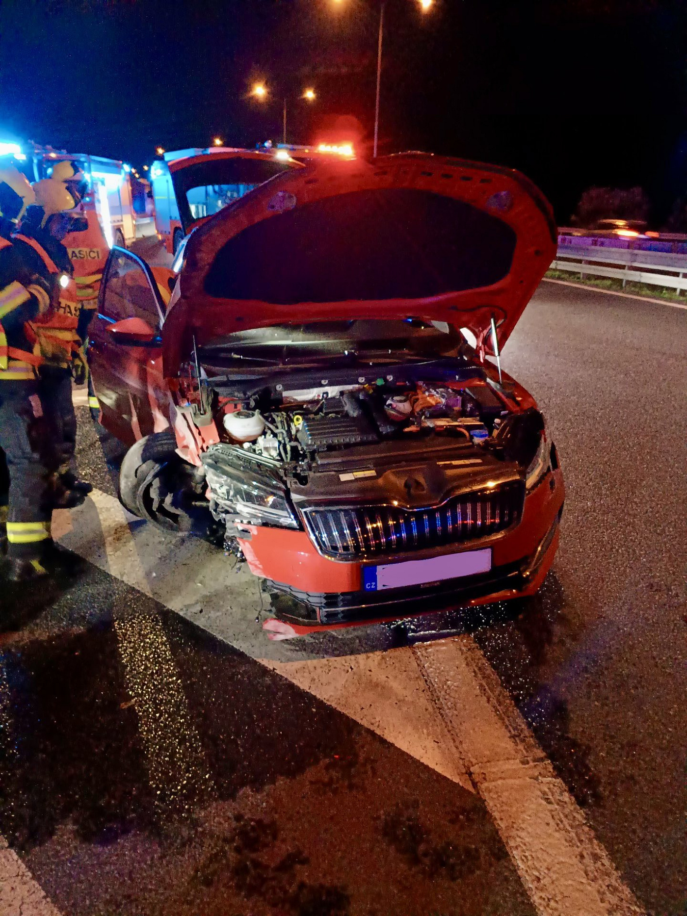 Čtyři jednotky hasičů vyjížděli před 21. hodinou na Pražský okruh, kde došlo u Třebonic k dopravní nehodě dvou osobních automobilů. Při nehodě se zranily dvě osoby, které si převzala do péče zdravotnická záchranná služba. Hasiči provedli protipožární opatření na vozidlech a zasypali uniklé provozní kapaliny.