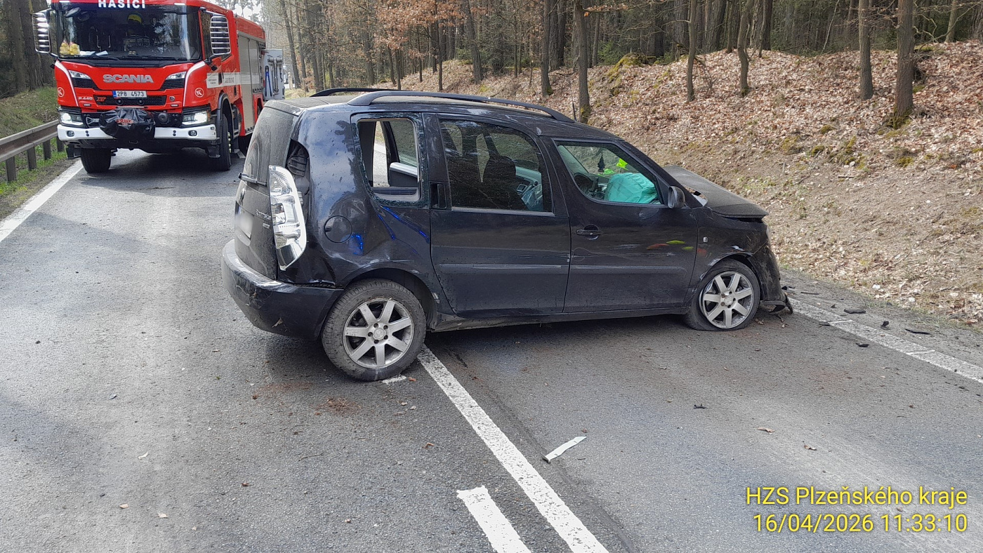 Na silnici 27/I nedaleko Horní Břízy havarovalo jedno osobní auto. Jedna osoba skončila v péči ZZS. Vzhledem k pozici havarovaného vozu po nehodě hasiči po dobu zásahu museli zastavit provoz. Následně byl provoz umožněn kyvadlově.