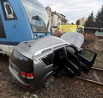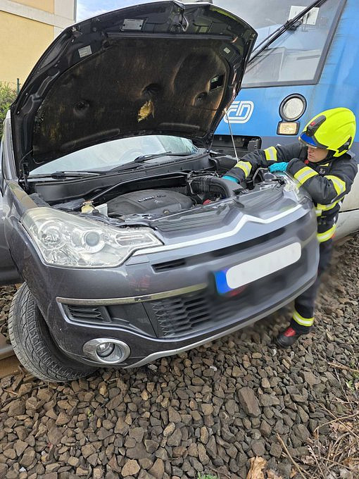 Tři jednotky hasičů zasahují v Jablonci nad Nisou u střetu osobního vozidla s vlakem