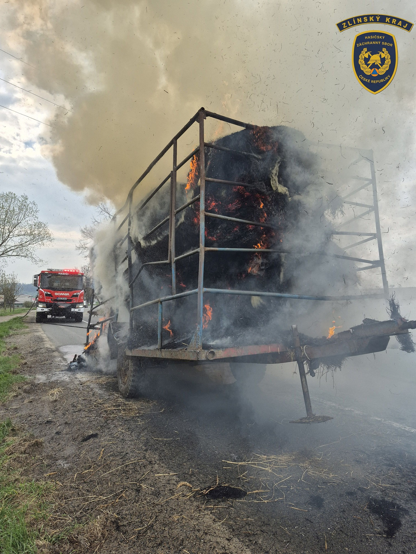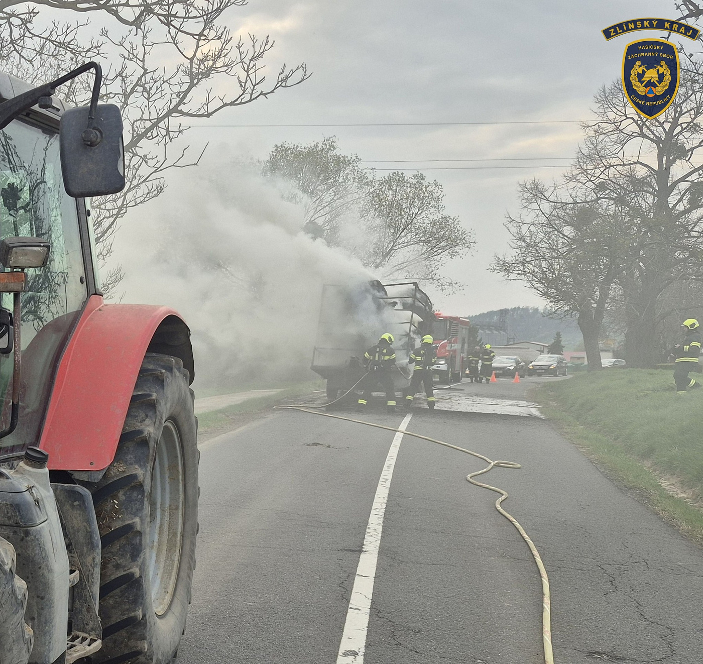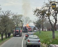 Požár vleku se senem omezil provoz na silnici u Prusinovic na Kroměřížsku