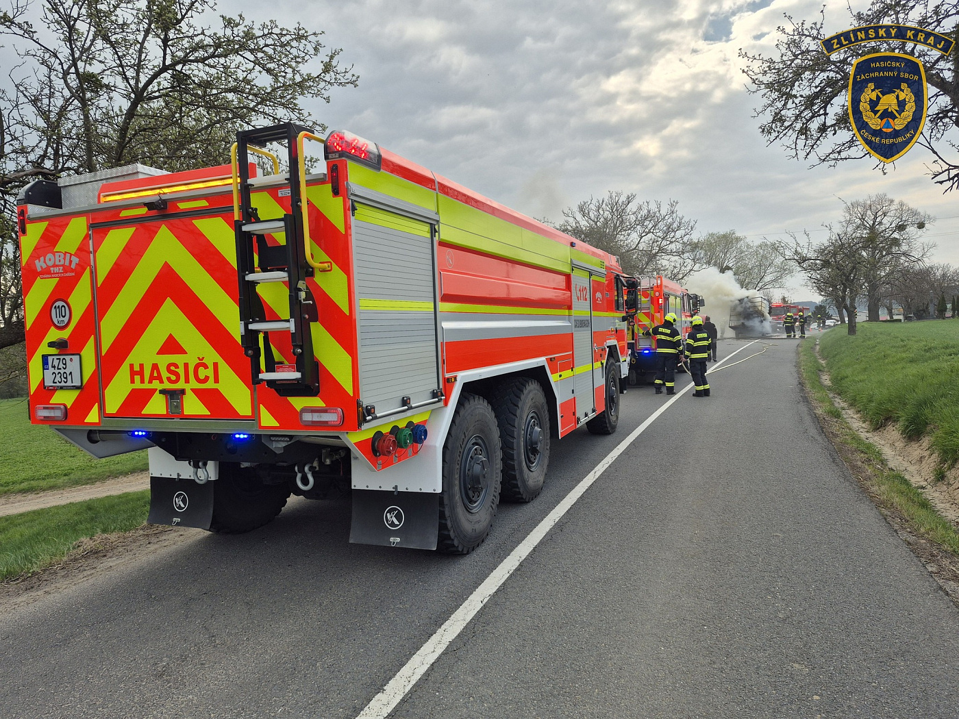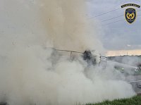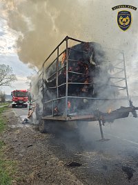 Událost se stala u obce Prusinovice na Kroměřížsku. Řidič při zpozorování požáru soupravu odpojil a odjel traktorem do bezpečné vzdálenosti. Hasiči po příjezdu zahájili hasební práce pomocí dvou vysokotlakých proudů vody. Po 25 minutách byl požár lokalizován a po dalších 20 minutách zlikvidován.