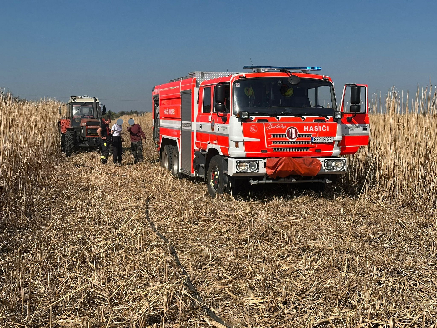 Při příjezdu hasičů už byl požár lokalizován, což se podařilo zemědělcům pomocí asi deseti ručních hasicích přístrojů. Díky jejich pohotovému zásahu se plameny nerozšířily na uschlý porost.