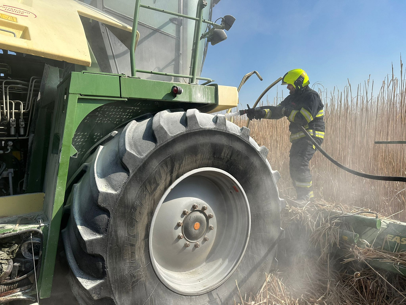 K požáru řezačky při sklizni netradiční plodiny s názvem miskantus, která se využívá na výrobu podestýlky pod koně, vyslalo operační středisko HZS Středočeského kraje profesionální jednotku z Říčan a dobrovolné jednotky obcí Škvorec a Úvaly krátce po půl desáté do katastru obce Škvorec na Praze – východ.