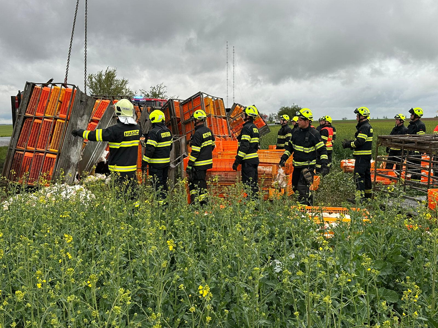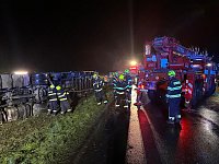 Jakmile bude na místo přistaven náhradní nákladní automobil, bude probíhat překládka slepic. Na místo byl povolán zástupce veterinární správy. Dále hasiči provedli protipožární opatření na vozidle a posyp drobného úniku provozních kapalin.