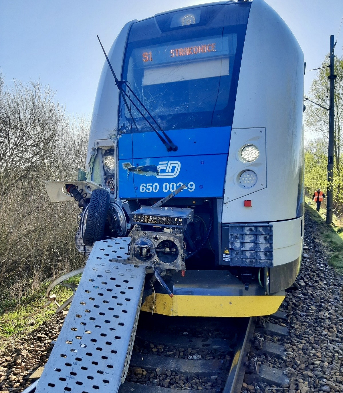 V úseku Protivín – Ražice (Strakonice) je zastaven provoz kvůli střetu vlaku s osobním autem na přejezdu u obce Skály. Na místě jsou složky IZS včetně hasičů Správy železnic. Z vlaku nejsou hlášena žádná zranění.