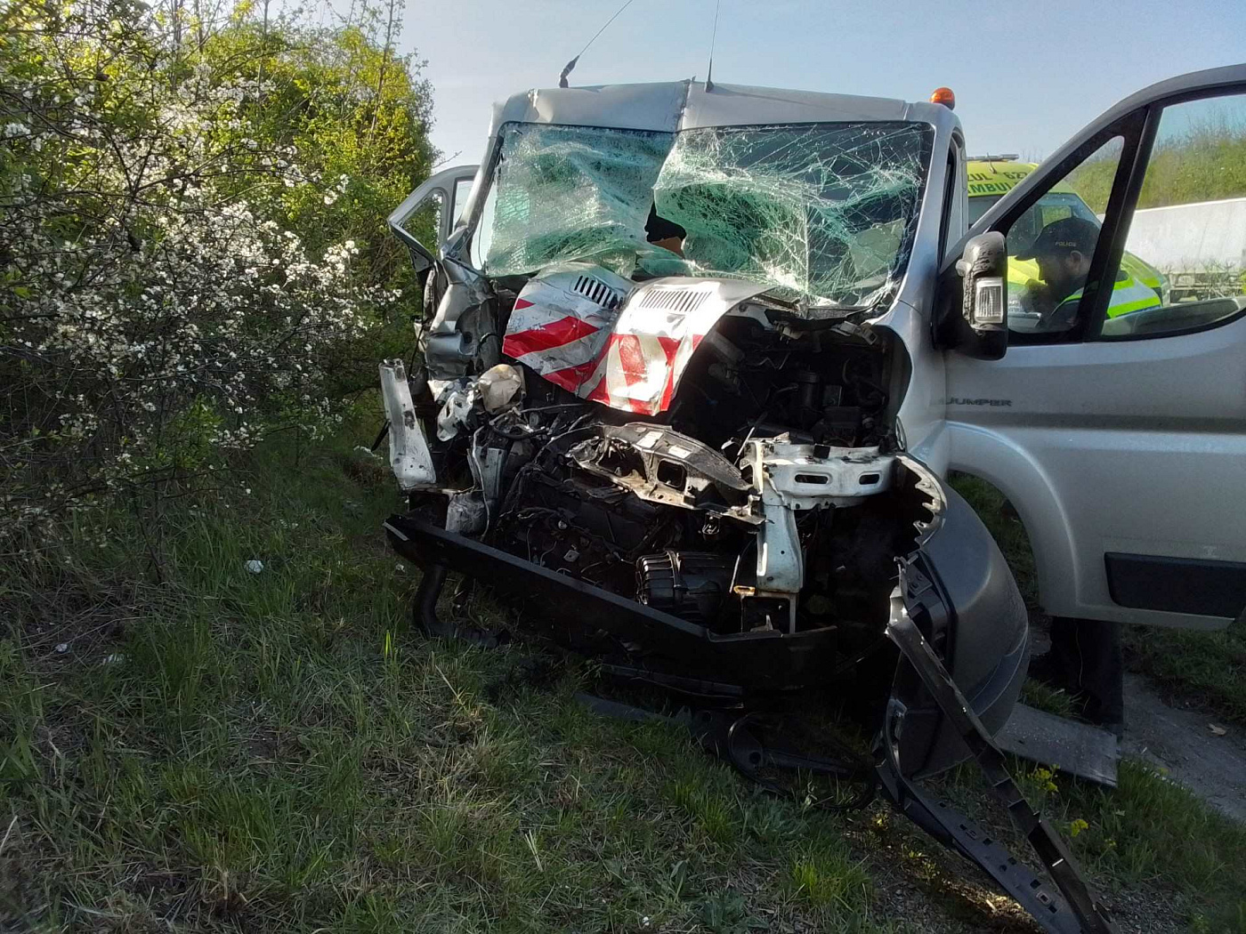 Směr na Německo je v 9:07 hodin průjezdný jen jedním jízdním pruhem z důvodu odklízení následků nehody. Kamion je odstaven na krajnici a dodávka mimo dálnici. Řidič dodávky je v péči ZZS ÚK.