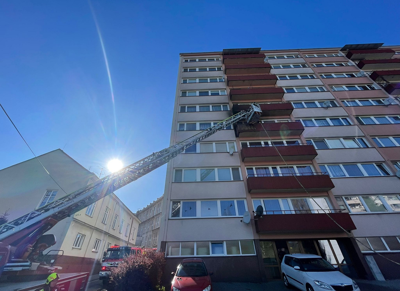 V Náchodě zasahují hasiči u požáru na balkóně panelového domu. Požár byl zlikvidován během krátké chvíle z výškové techniky. K rozšíření požáru do obytných prostor nedošlo.
