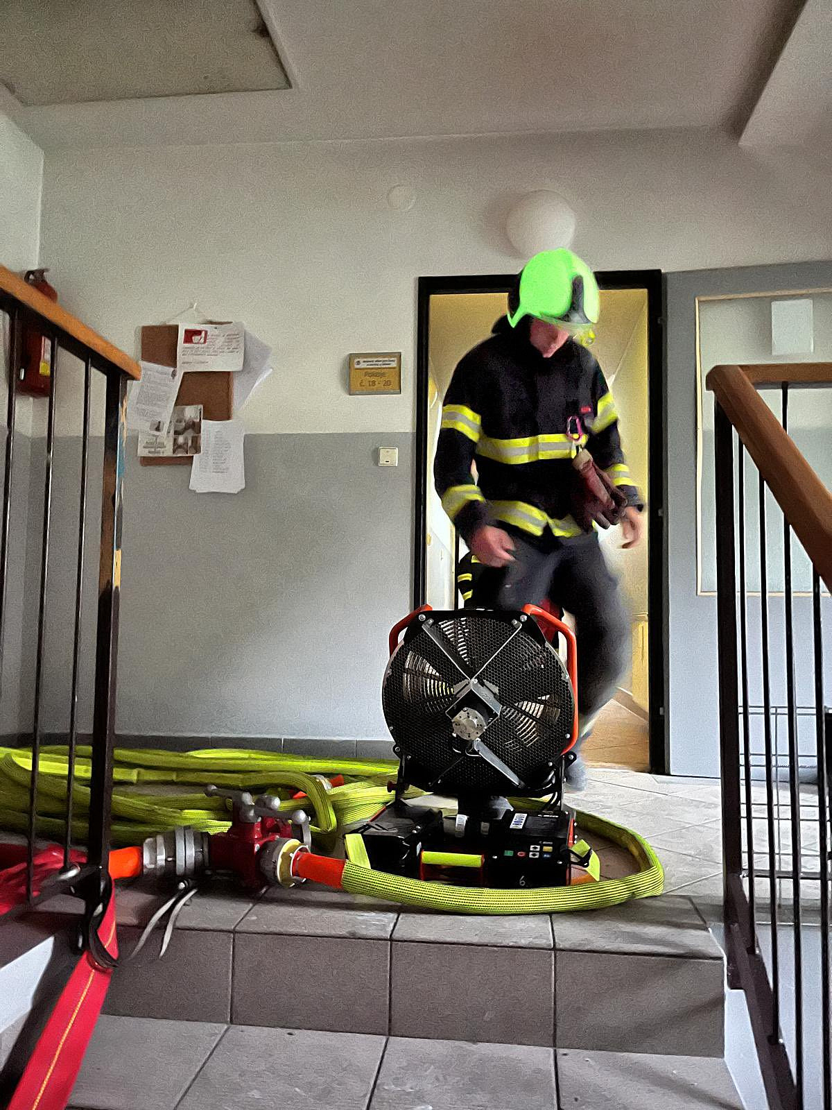 Průzkumem hasiči zjistili, že hoří na půdě budovy, byly zakouřeny dva byty o patro níž. Hasiči použili k odvětrání přetlakovou ventilaci. V tu chvíli mohli všichni obyvatelé zpět do společenské místnosti uvnitř budovy. Náhradní ubytování zřejmě nebude potřeba, bude vyřešeno volnými kapacitami uvnitř zařízení. Na místě pracuje vyšetřovatel požárů, který stanovil škodu 100.000 korun. Příčina se vyšetřuje.
