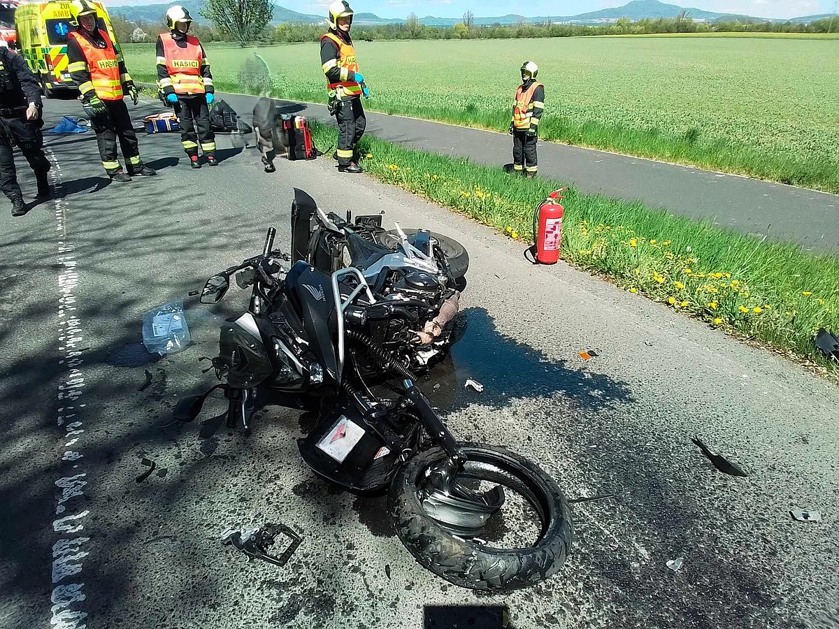 K dopravní nehodě dvou motorek došlo v Hrdlech. Hasiči na místě pomáhali ZZS s první neodkladnou pomocí dvěma zraněným osobám a zajistili protipožární opatření. Po dokončení setření nehody Policií ČR provedli ještě úklid vozovky od uniklých provozních kapalin a odstranili trosky motorek.