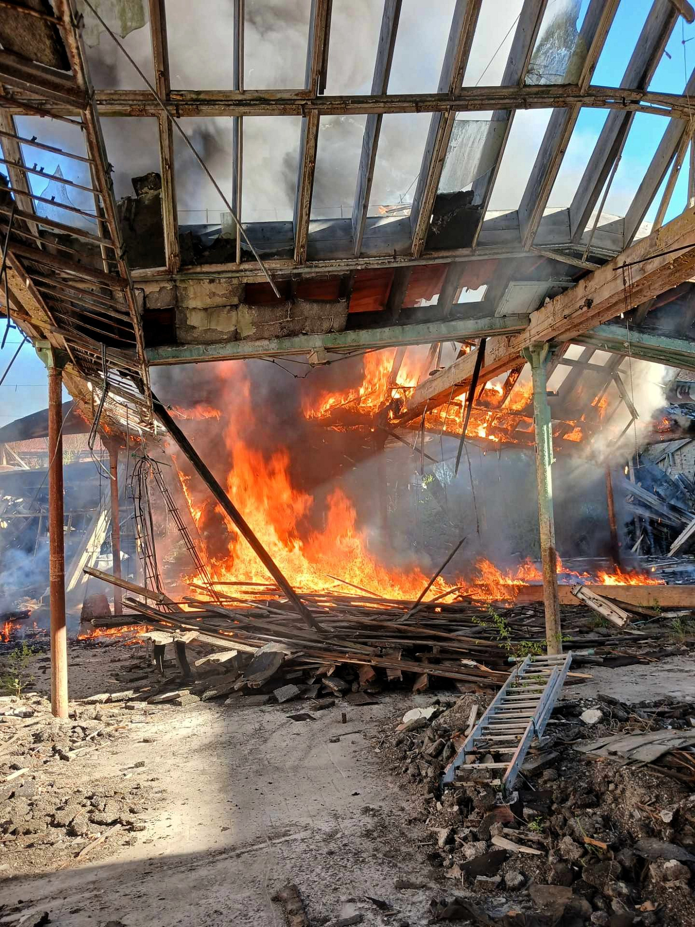V 8:24 hodin přijalo krajské operační a informační středisko HZS Ústeckého kraje zprávu o požáru v Boleticích nad Labem. Hořela konstrukce průmyslové haly určené k demolici a odpad v ní.