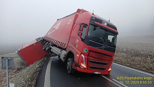 Na silnici 22/I na úrovni Pláničky blokuje dopravu nehoda nákladního auta s přívěsem. Komunikace je v místě uzavřena, objízdné trasy řeší PČR.