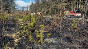 Profesionální hasiči z centrální hasičské stanice Žďár nad Sázavou zasahují společně s jednotkami SDH obcí Borovnice a Jimramov v obci Borovnice na Žďársku u požáru lesního porostu.