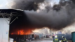 Druhý stupeň požárního poplachu vyhlásili hasiči při požáru areálu v obci Lomy na Jindřichohradecku