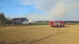 Nedaleko obce Přehořov u Tábora zasahují profesionální hasiči ze stanice Soběslav a dobrovolné jednotky Přehořov a Tučapy u požáru balíků slámy. Stoh hasiči částečně rozebrali, aby ho mohli dohasit. Na místě byla ponechána místní jednotka na dohlídku.