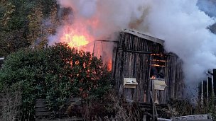 Požár zahradní chatky likvidují hasiči v Lomu na Mostecku. Hoří v Lesní ulici.