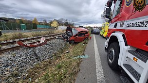V Zašové havaroval osobní automobil, skončil v kolejišti