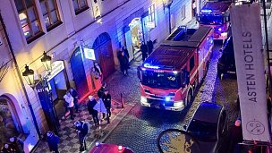 Profesionální hasiči ze tří stanic vyjížděli do ulice Nerudova v Praze k nahlášenému kouři z hotelového pokoje. Provedeným průzkumem byl zjištěn požár postele v jednom z pokojů. Požár byl uhašen jedním vodním proudem. Před příjezdem hasičů se evakuovalo 13 lidí.