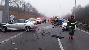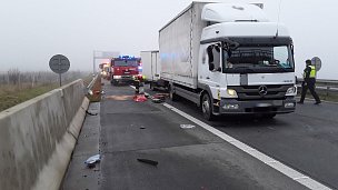 Šest hasičských vozidel zasahuje na 32. kilometru dálnice D2 ve směru na Brno. Srazila se tam dodávka s kamionem. Z dodávky hasiči vyprostili jednu osobu, dálnice je v místě neprůjezdná.