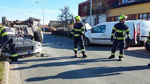 Jedno vozidlo skončilo na střeše a dvě zraněné osoby si převzala ZZS u nehody v Pardubicích. Na místě zasahovala jedna jednotka hasičů.