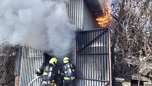 V Malešicích zlikvidovali pražští hasiči požár plechové garáže. Na místo byly vyslány čtyři jednotky. Garáž byla požárem zasažena v plném rozsahu. Hasiči požár uhasili jedním proudem vody.
