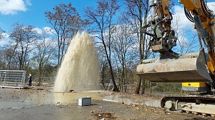 V ulici Kyjevská v Pardubicích zasahují hasiči u prasklého vodovodního potrubí. Voda může odtékat do řeky Chrudimky, kde může docházet k zakalení vody.