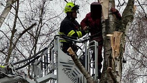Profesionální hasiči ve Varnsdorfu zachraňovali pomocí automobilového žebříku zraněného muže ze stromu