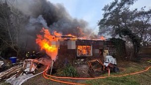 Deset jednotek hasičů zasahuje v obci Hostivice u požáru dřevěného tesko baráku