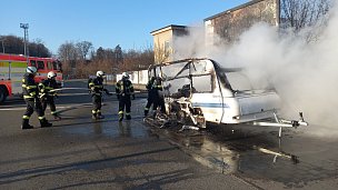 V Rychnově nad Kněžnou před Kauflandem likvidují hasiči požár karavanu. Hasičům se povedlo rozpojit soupravu a zabránit tak rozšíření plamenů na osobní auto. Karavan po uhašení prohlédli termokamerou. Příčina vzniku požáru je v šetření.